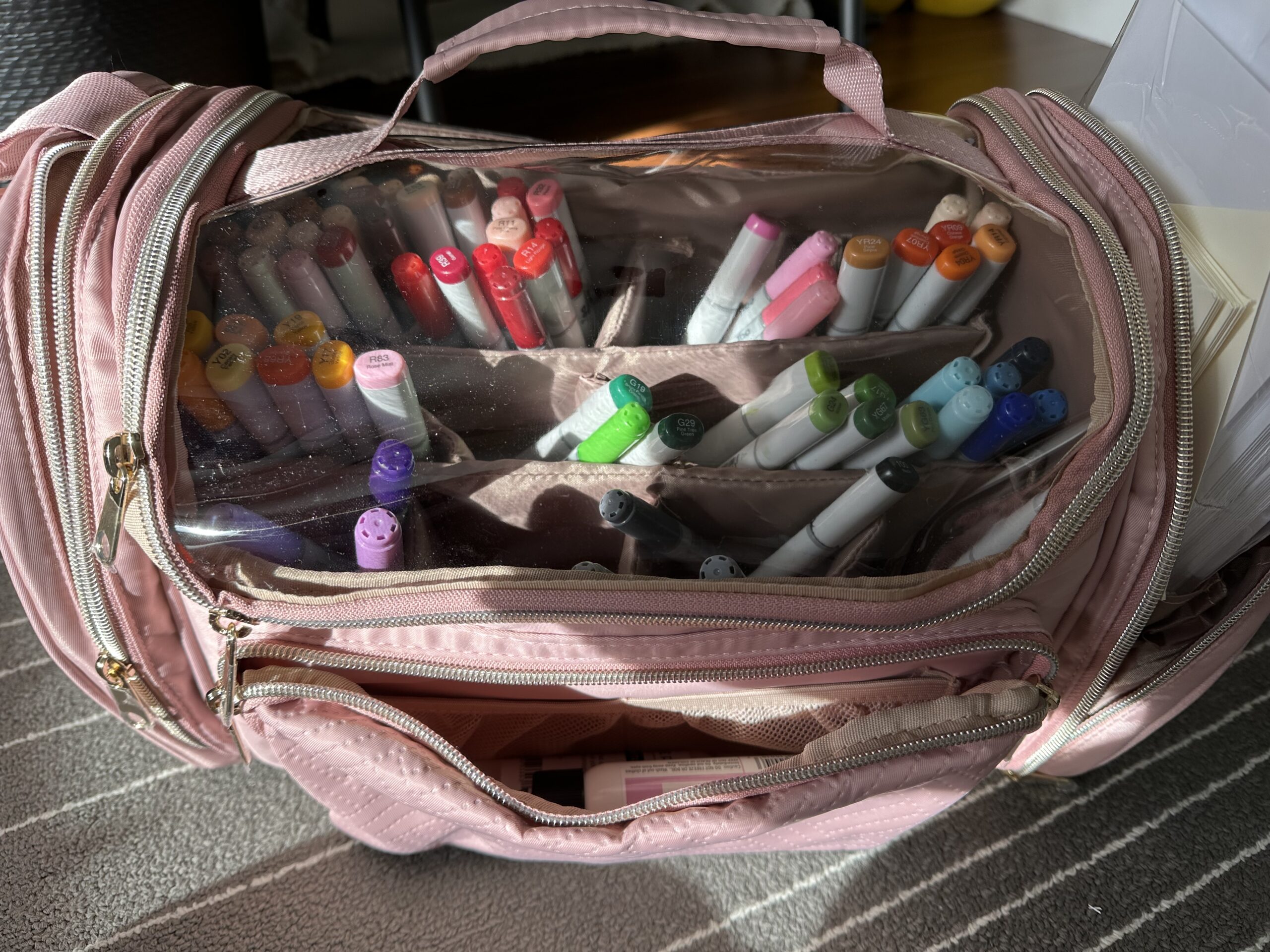This case is a lifesaver for organizing all my Copic markers. With its sleek, black exterior and sturdy handle, I can easily transport it from my closet to my crafting